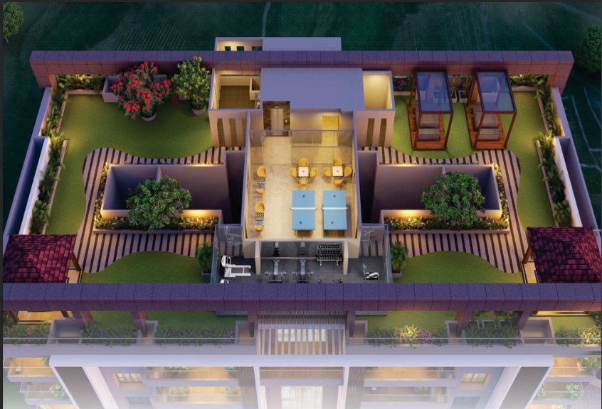 Outdoor sitting deck | Community library | Billiards table | Card zone | Business centre | Infotainment wall (for live matches or events). Community hall | Squash court | Gym | Indoor sports room | Sculpture Court | Swimming Pool | Skating Rink | Amphitheatre Multi-Purpose court | Yoga Court | Kid’s Play Area | Jogging Track | Walking track | Skyplex | Pavilions | Sky gym | Sky gazing deck | Yoga deck.
